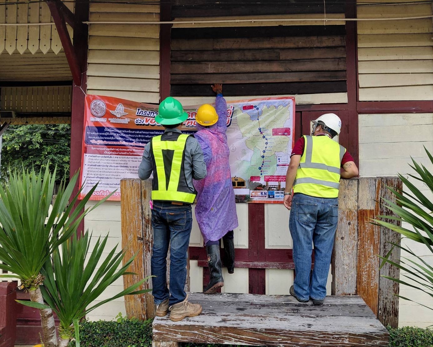 เวลา 08.00-12.00 น. ที่ปรึกษา CSCKN และผู้รับจ้างก่อสร้าง เริ่มดำเนินการติดตั้งป้ายประชาสัมพันธ์โครงการฯ ซึ่งแสดงรายละเอียดข้อมูลโครงการฯ แนวเส้นทางโครงการฯ และช่องทางการติดต่อศูนย์รับเรื่องร้องเรียนของโครงการฯ จำนวน 3 สถานี ประกอบด้วย สถานีห้วยสามพาด สถานีหนองตะไก้ และสถานีหนองขอนกว้าง